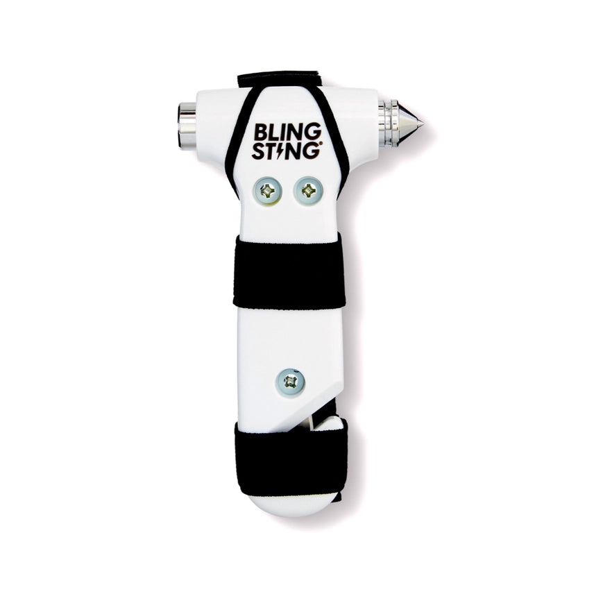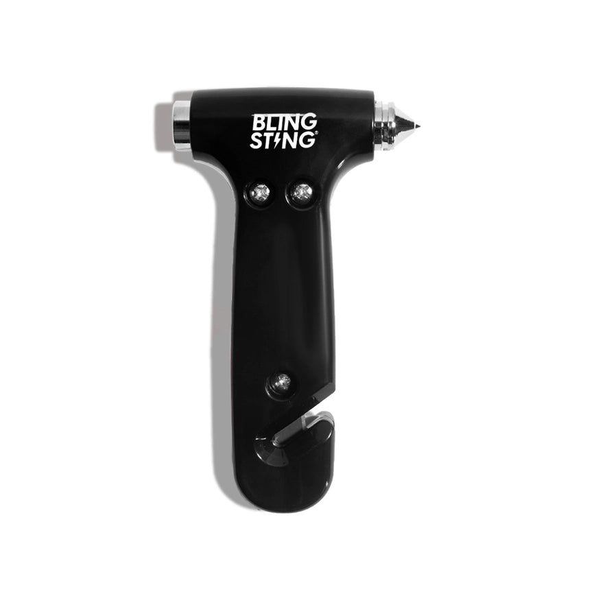 + Emergency escape hammer for the car, office, dorm + Easily breaks glass with a high-quality carbide tip + Easily cuts the seatbelts of trapped passengers + Adjustable visor strap included + BLINGSTING is the #1 women's personal safety brand and has been trusted by over 3 million women!