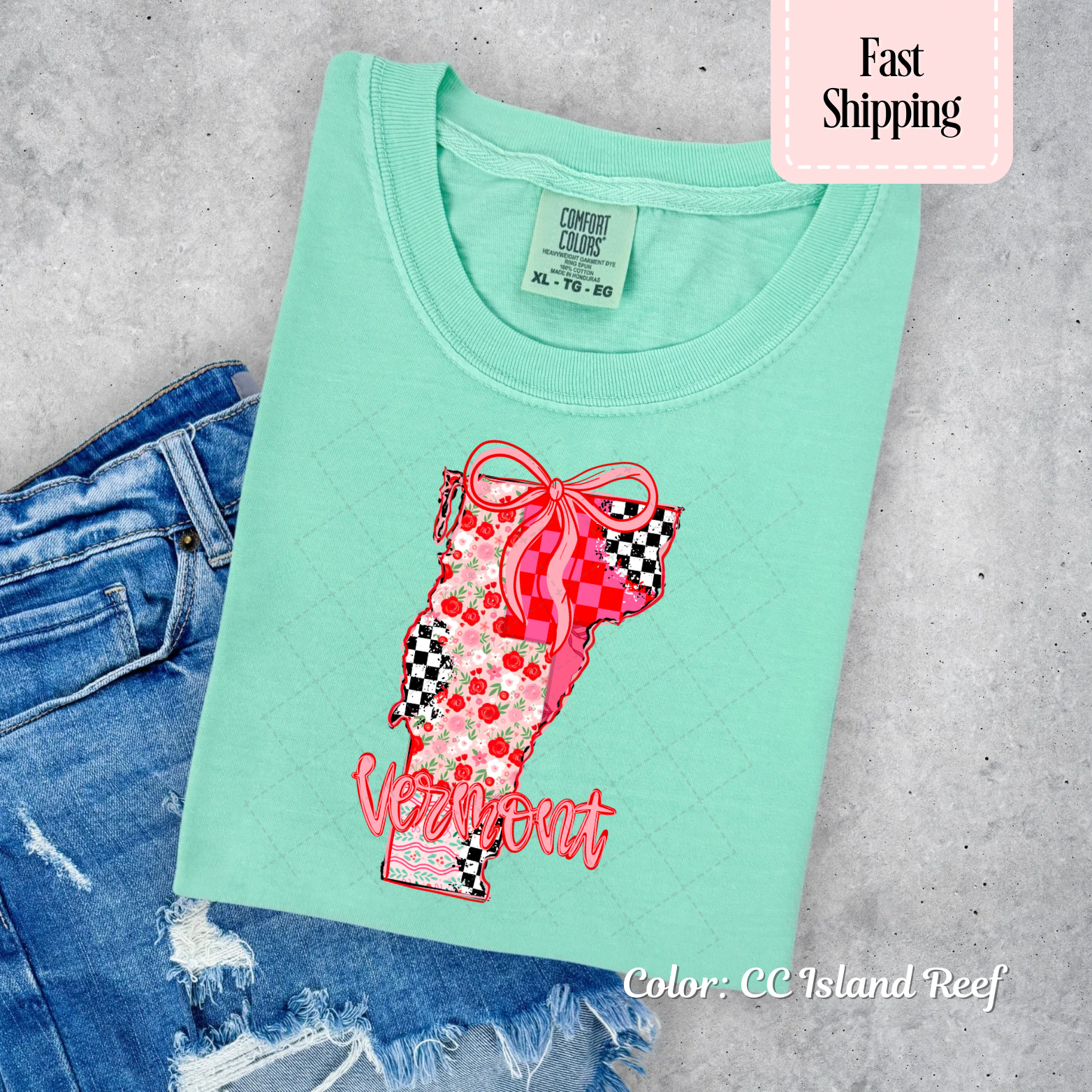 Calling all girlie girls! This tee is your new go-to for warm weather vibes and sweet state pride! Featuring a dainty bow design (because bows make everything better), this comfy tee brings the perfect blend of cute and classy.